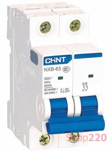 Модульный автомат 63А, 2 полюса, тип С, NXB-63 Chint