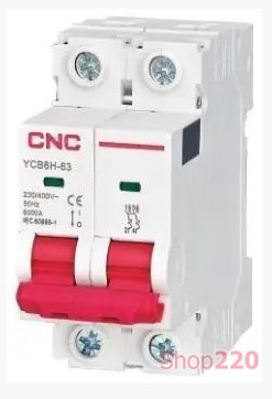 Автоматический выключатель 63 А, 2-полюсный, тип C, YCB6Н-63 CNC