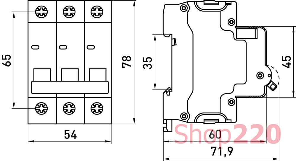 Количество занимаемых модулей на дин-рейке (17,5мм): 3
