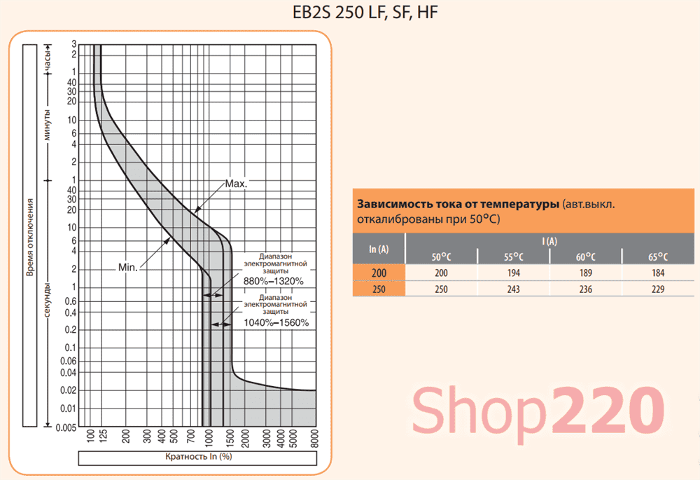 Промышленный автомат 250А ETI серии ETIBREAK используется для защиты от перегрузки и КЗ силовых кабелей, линий, мощных электродвигателей и других потребителей э/э. Он фиксированный тепловой и электромагнитный расцепители. В корпус автомата возможна установка дополнительных контактов, независимого расцепителя или расцепителя минимального напряжения.