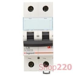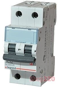 Характеристики двух полюсного автоматического выключателя 404042 Legarand: