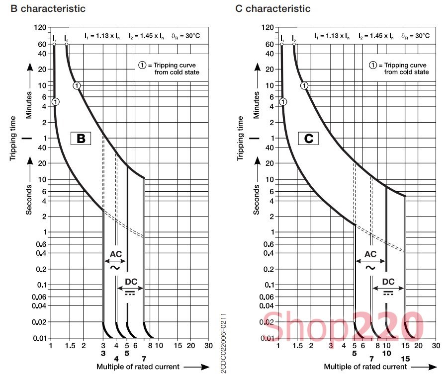 Характеристики автоматического выключателя ABB