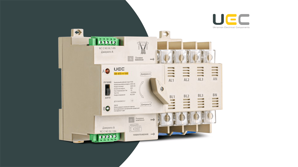 Автоматический переключатель резервного питания 100А, 4 полюса, UEC SB-ATS-4-100