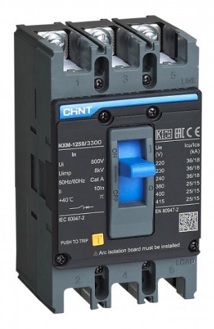 Корпусный силовой автоматический выключатель с номинальным током 100 А производства Chint тип NXM-125S/3300 предназначен для защиты электрических сетей переменного тока частотой 50 Гц и напряжением 400 В от перегрузки и токов короткого замыкания. Также, автомат может быть использован для нечастых оперативных включений и отключений электрических сетей на промышленных и бытовых объектах. Как и другие корпусные устройства, он устанавливается на монтажную панель в щит при помощи болтов. Напряжение питания переменного тока может подаваться как со стороны верхних, так и со стороны нижних контактов. Монтаж, настройка и подключение должны осуществляться только квалифицированным электротехническим персоналом.