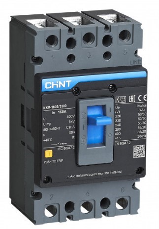 Корпусный силовой автоматический выключатель с номинальным током 160 А производства Chint тип NXM-160S/3300 предназначен для защиты электрических сетей переменного тока частотой 50 Гц и напряжением 400 В от перегрузки и токов короткого замыкания. Также, автомат может быть использован для нечастых оперативных включений и отключений электрических сетей на промышленных и бытовых объектах. Как и другие корпусные устройства, он устанавливается на монтажную панель в щит при помощи болтов. Напряжение питания переменного тока может подаваться как со стороны верхних, так и со стороны нижних контактов. Монтаж, настройка и подключение должны осуществляться только квалифицированным электротехническим персоналом.