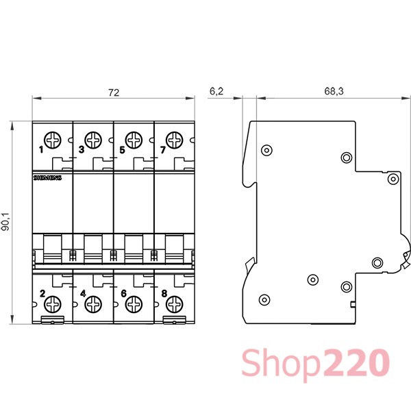 Количество занимаемых модулей на дин-рейке (17,5мм): 4