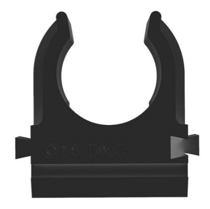 Держатель с защелкой предназначен для монтажа гладких ПВХ труб на поверхности стен, потолков, пола. Их конструкция позволяет соединять вместе несколько держателей одного и разных диаметров. Держатель ДКС выполнен из АБС-пластика и предназначен для труб диаметром 16 мм. Поставляется в упаковках по 100 штук.