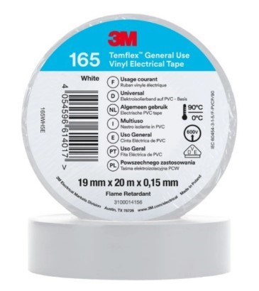 Изолента ПВХ белая, 20м, Temflex 165 3M