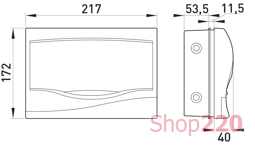 Электрический щит врезного исполнения на 9 модулей. Материал корпуса — пластик, дверца черная, прозрачная. Размеры: 172х217х105 мм.