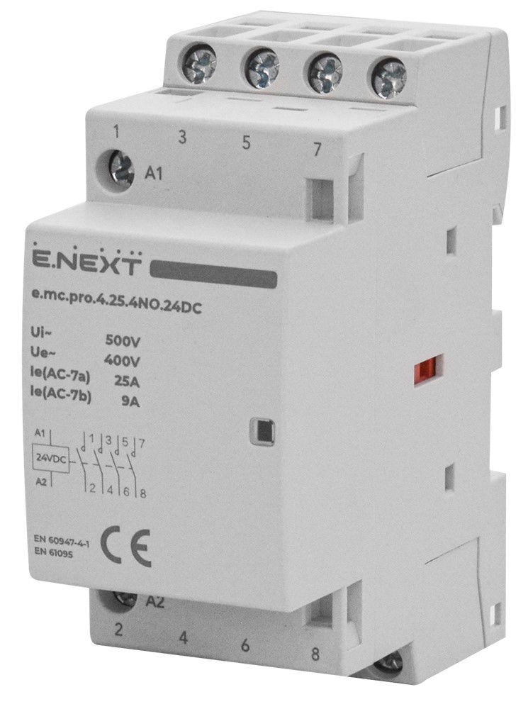 Модульный контактор 25А 4р 4NO, катушка 24В, e.mc.pro.4.25.4NO.24DC ENEXT p005305