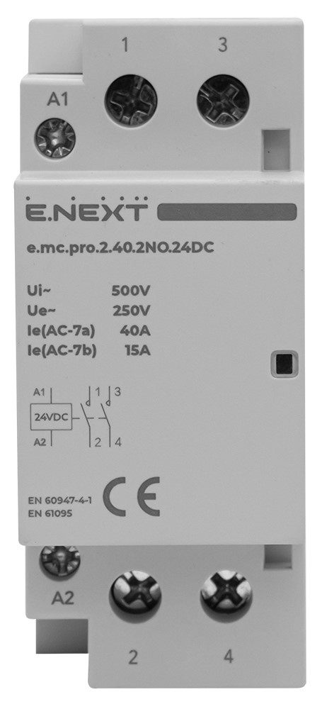 Модульный контактор 40А 2р 2NO, катушка 24В, e.mc.pro.2.40.2NO.24DC ENEXT p005303