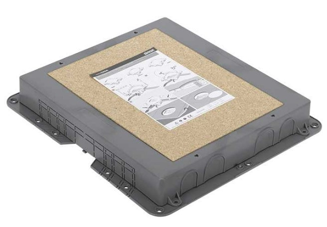 Модель рассчитана на восемь боковых вводов и оснащена каналами размером от 50×28 мм до 150×38 мм, что облегчает подключение кабельных трасс. Монтаж выполняется горизонтально в наливной пол с фиксацией посредством крепежа. В комплект входит защитная крышка и руководство по установке. Благодаря высокой механической прочности (IK08) и возможности работы при температуре монтажа от –5 до +60 °C коробка подходит для применения в образовательных учреждениях, больницах, гостиницах и других объектах с повышенными требованиями к надежности и безопасности электроснабжения.