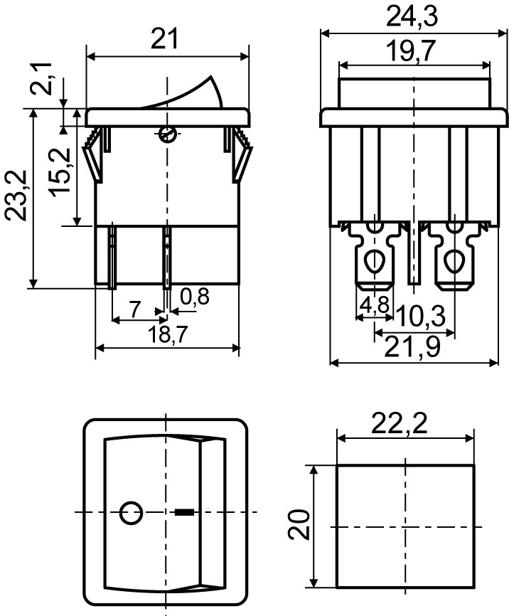 Предназначен для коммутации низковольтных электрических цепей управления питанием и т.д.