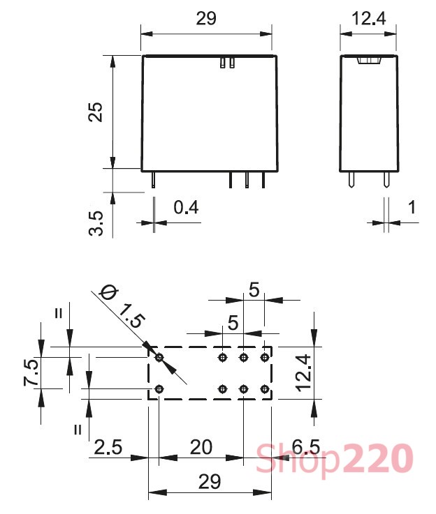 Габаритные размеры: 29х12,4х25мм
