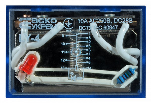 Реле промежуточное 24 В АС, 10 А, 4 СО, LY4 Аско