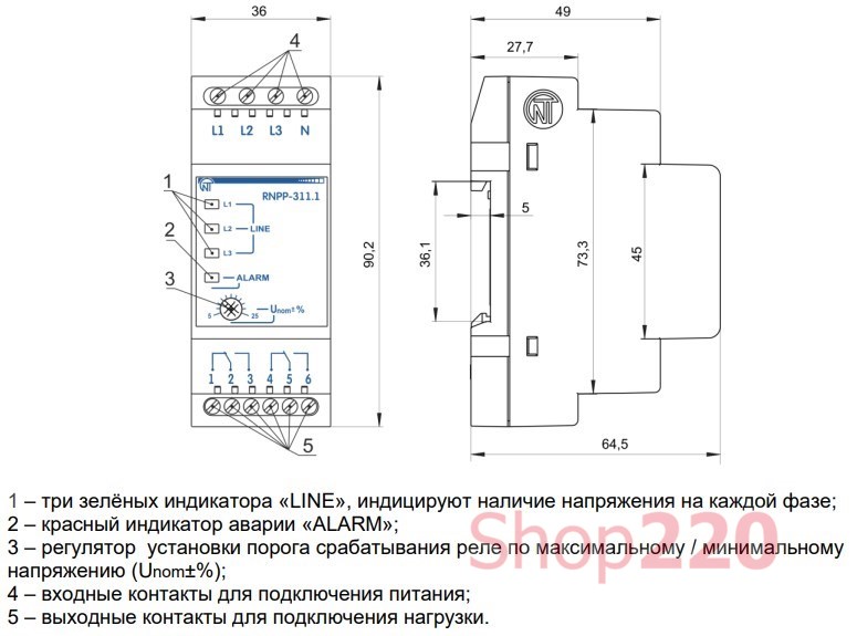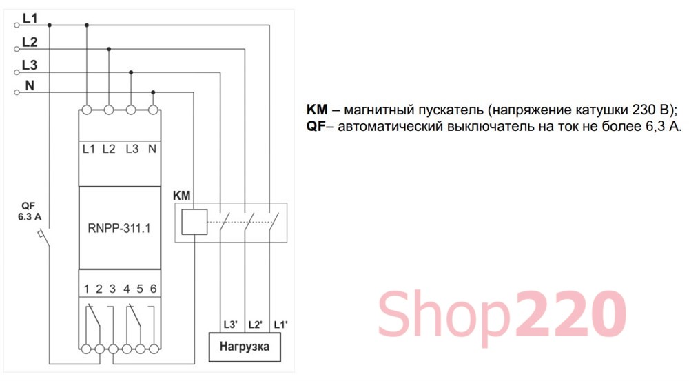 Реле напряжения, перекоса и последовательности фаз RNPP-311.1 предназначено для отключения нагрузки 400 В 50 Гц при: