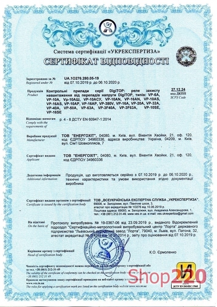 Термозащита. Встроенный датчик контролирует температуру внутри корпуса. Прибор отключает нагрузку, если внутренняя температура превышает 70°C.