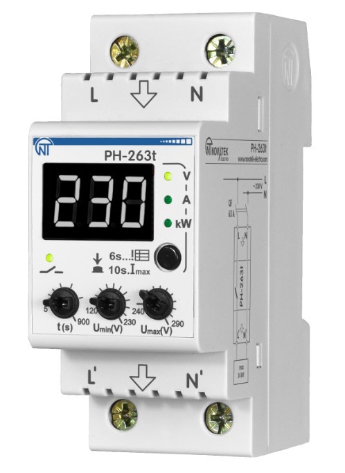 Реле напряжения 63А с термозащитой, РН-263t Новатек-Электро