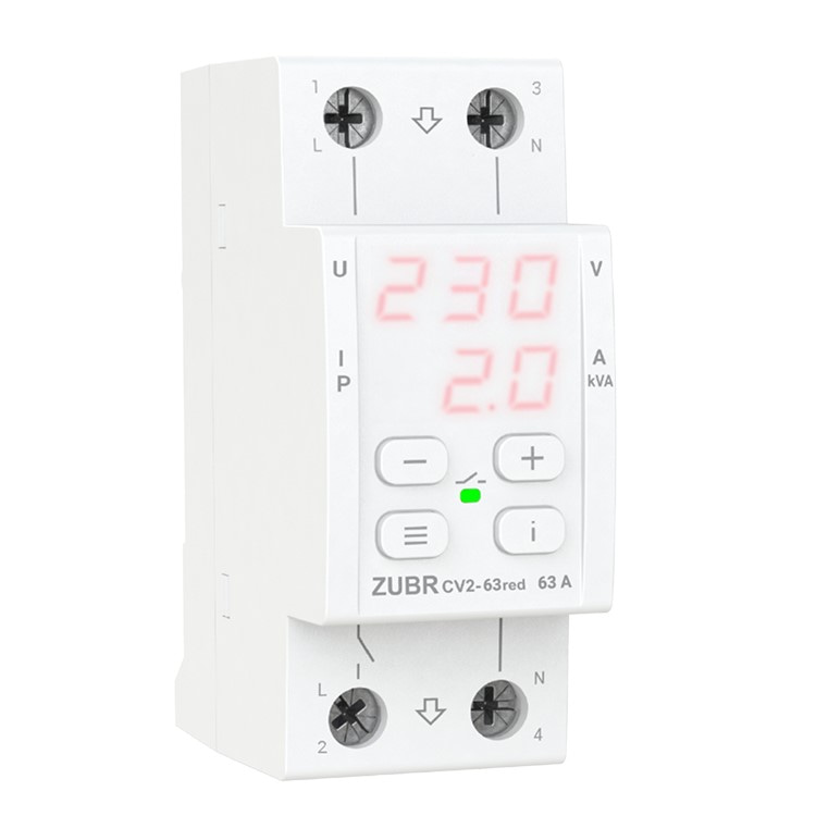 Реле напряжения с контролем тока, 63А, CV2-63 red Zubr
