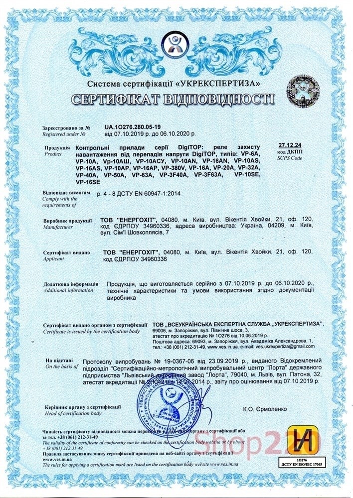 Время отключения при превышении верхнего порога: не более 0,02 сек