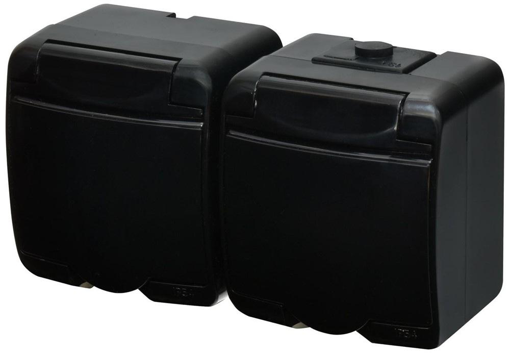 Розетка двойная накладная, черный/черная крышка, IP 54 Hermetics ETI 4668094