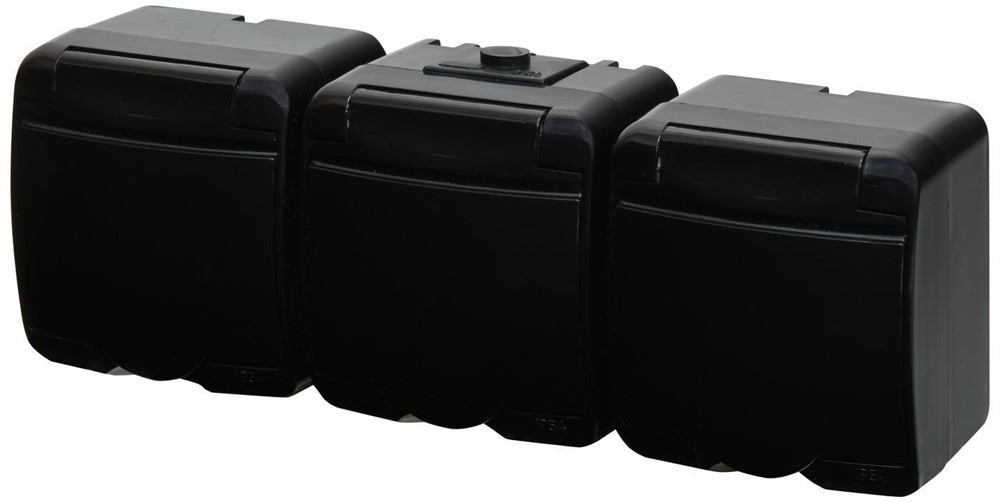 Розетка тройная накладная, черный/черная крышка, IP 54 Hermetics ETI 4668095