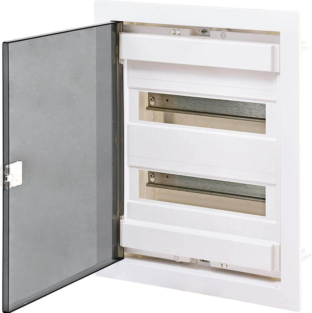 Распределительный электрический щит серии ECG ETI используется в промышленном, офисном и жилищном строительстве. Щит комплектуется дин-рейкой для установки модульных приборов защиты, контроля и распределения электроэнергии. Корпус щита обладает высокими механическими, электрическими и эксплуатационными характеристиками. В стандартную комплектацию щита входят DIN-рейка, крепежные аксессуары, заглушки, маркировочные наклейки, а также нейтральные и заземляющие шины (клемм кв).