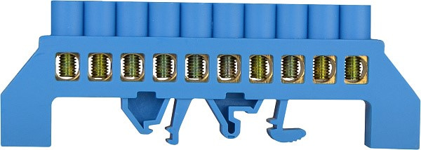 Корпус выполнен из прочного полиамида PA-6, устойчивого к нагреву и механическим воздействиям. Токопроводящая часть изготовлена из латуни с увеличенным профилем 8×12 мм, что повышает механическую прочность и допустимую нагрузку. Шесть контактных отверстий диаметром 7 мм обеспечивают удобное подключение проводников различного сечения, а клеммы с винтами М5 гарантируют плотное и долговечное зажатие.