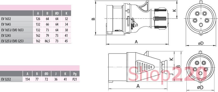 Силовая вилка 16А, 380В, 5 полюсов, переносная, EV-1653 ETI 4482018