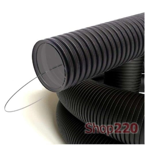 Наружный гофрированный слой воспринимает механические нагрузки, а внутренний гладкий слой облегчает протяжку кабеля и снижает риск повреждения изоляции. Труба изготовлена из ПНД, устойчива к влаге и воздействию агрессивных сред. Прочность на сжатие 500 Н позволяет использовать изделие при заливке в бетон и прокладке в грунте без дополнительной защиты.