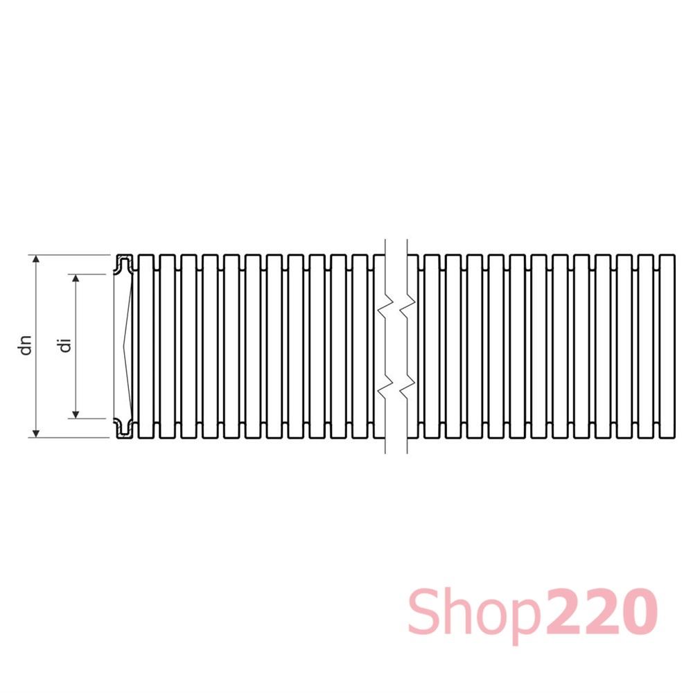 Гибкая пластиковая гофрированная труба (гофра) применяется для монтажа скрытой электрической проводки. Подходит для установки на поверхности, в стяжке, под штукатуркой. Применима для монтажа в пустотелые стены, штукатуренные стены и потолки. Для легкого и безопасного затягивания кабеля в гофру, внутри нее протянута стальная протяжка. Гофротруба изготовлена из самозатухающего ПВХ, имеет механическую стойкость 350 N на 5см. Разрешается установка в помещениях с возможностью взрыва горючих газов и паров зоны 2, а также в помещения с возможностью взрыва горючей пыли зоны 22. Ультрафиолетостойкая.