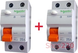 Комплект 2шт: Дифференциальный выключатель (УЗО) 25A 30мА, 2 полюса, 11450 Schneider Electric