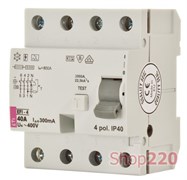 УЗО 40А 30мА, 4 полюса, тип А, HNC-40/4/003-A Eaton 194688