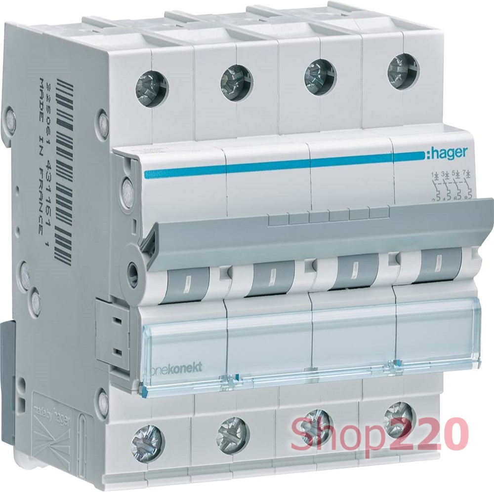 Автоматический выключатель 20 А, 4-полюсный, хар-ка С, Hager MCN420