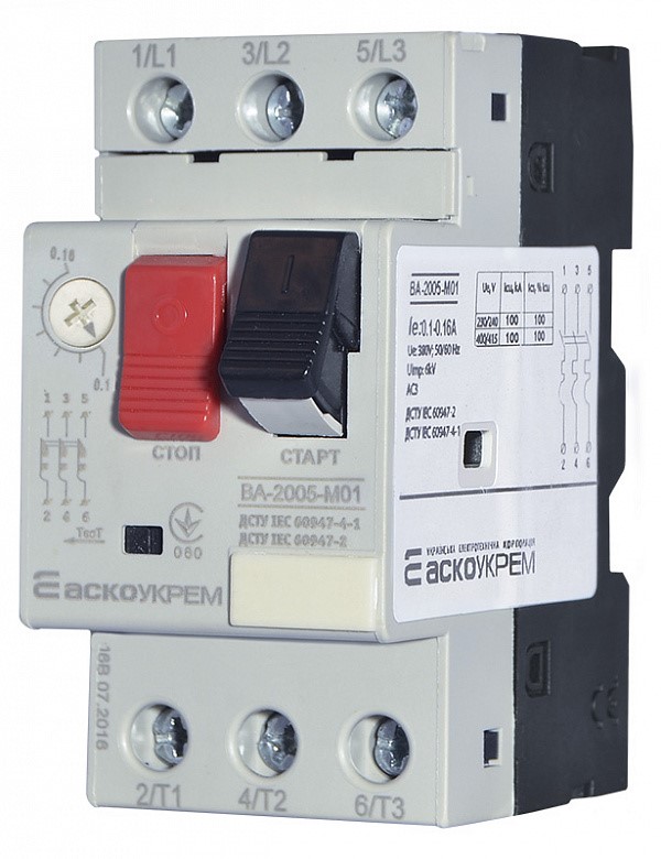 Автоматический выключатель защиты двигателя М01, УКРЕМ ВА-2005 A0010050013