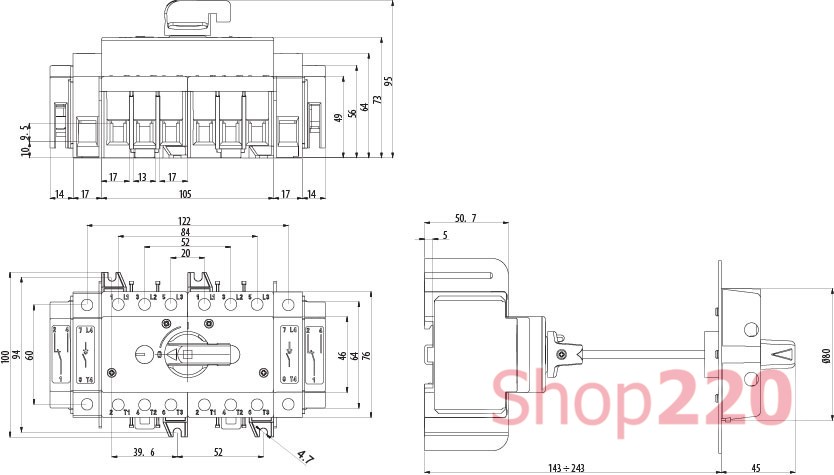 Переключатель "1-0-2" на генератор 100А 3 полюса, LAS CO ETI 4663107
