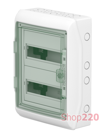 Атмосферостокий электрический щит 13983 Schneider Mureva (Kaedra) предназначен для распределения электрической энергии низкого напряжения в жестких условиях окружающей среды либо снаружи помещений. Он имеет степень защиты от влаги и пыли IP65, а степень ударопрочности составляет IK09. Корпус влагозащищенного щитка имеет перфорированные отверстия для возможности установки гермовводов типа PG. Пластик, из которого изготовлен корпус щита, самозатухающий, способен выдержать температуру до 650 °С. Щит позволяет устанавливать электрооборудование на токи до 63А. Щит может использоваться в качестве: