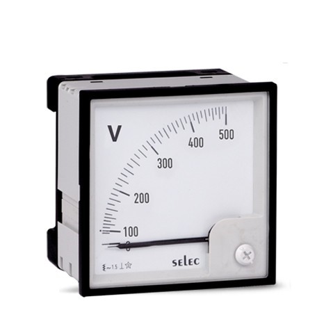 Производитель SELEC, Индия Тип измерителя вольтметр Монтаж на панель Диапазон измерения напряжения AC 0...500 В Измерение напряжение переменного тока (AC) Частота 50...60 Гц Рабочая температура 0...60°C Тип аналоговый, Размеры 72 x 72 x 68 мм Характеристики шкалы